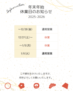 2025/11/28 ~年末年始の営業日についてお知らせです~